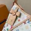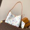 Joyful details uplift the classic CarryAll PM bag with a playful spirit as part of the re-edition of the Louis Vuitton x Murakami Collection. The body-friendly design is crafted from Monogram coated canvas that has been vibrantly reimagined in the Japanese artist’s signature palette, while the House’s emblematic natural cowhide leather frames the silhouette and the name tag is adorned with a chic bow detail.