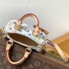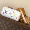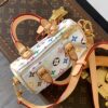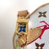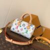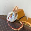 The scaled-down Nano Speedy bag makes a playful statement in Monogram coated canvas, which has been reworked in upbeat tones as part of the re-edition of the Louis Vuitton x Murakami Collection. Natural cowhide leather trims add a timeless touch, as do two Toron top handles and a gleaming golden padlock in homage to the House’s travel heritage. Complete with a removable, adjustable strap and an exclusive LV x TM key bell.