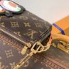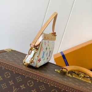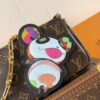 The House’s classic Pochette Accessoires makes a vibrant statement as part of the re-edition of the Louis Vuitton x Murakami Collection. Crafted from timeless Monogram coated canvas, the silhouette of the pouch is reworked with the artist’s playful Panda character in vibrant pop colours. The natural cowhide leather strap and chic golden chain are both removable for versatile styling options, while a zip fastening keeps daily essentials secure.